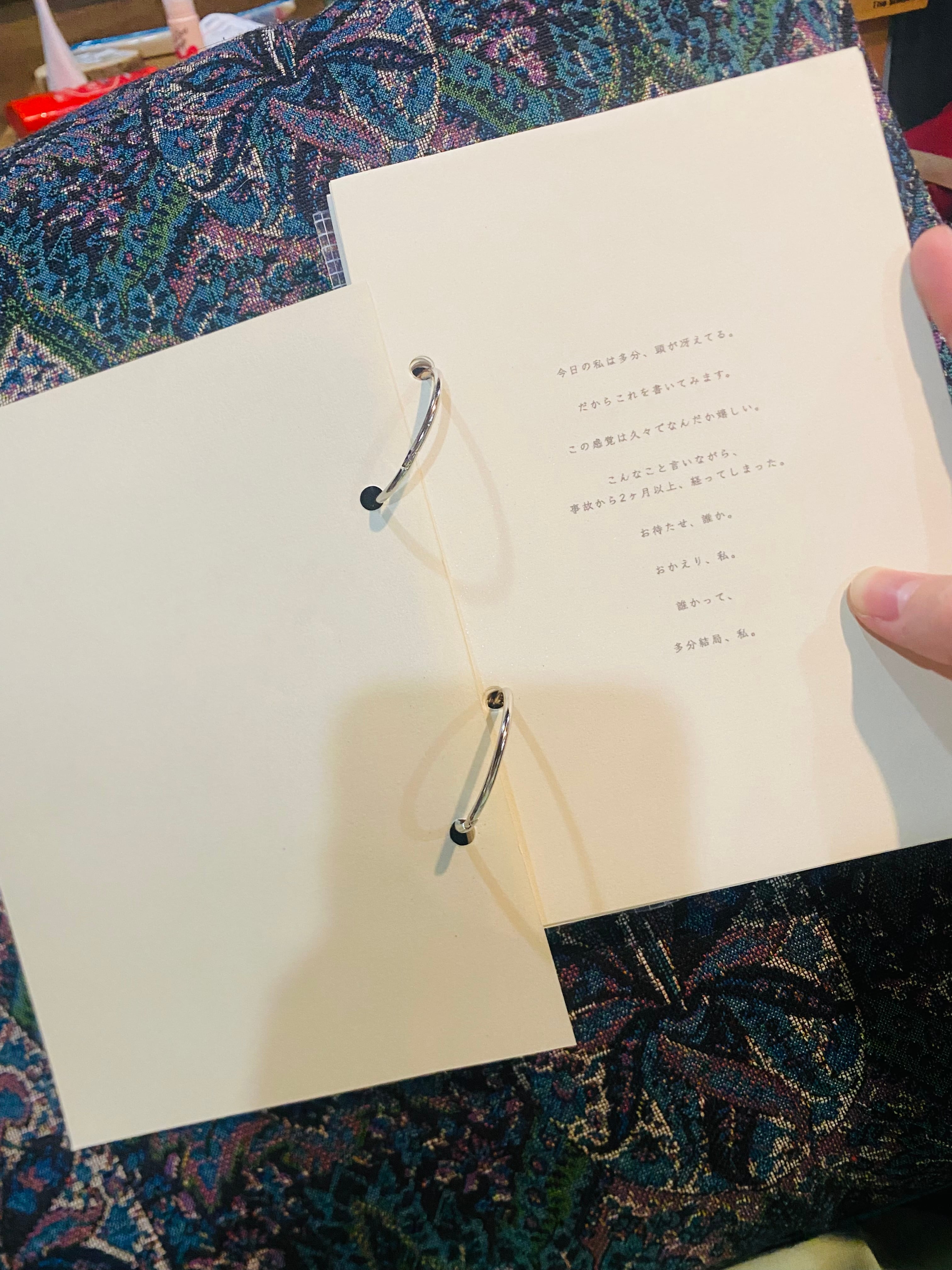 拙いですが、表紙も紙もお守りも色々と手作りで丹精込めた本です。