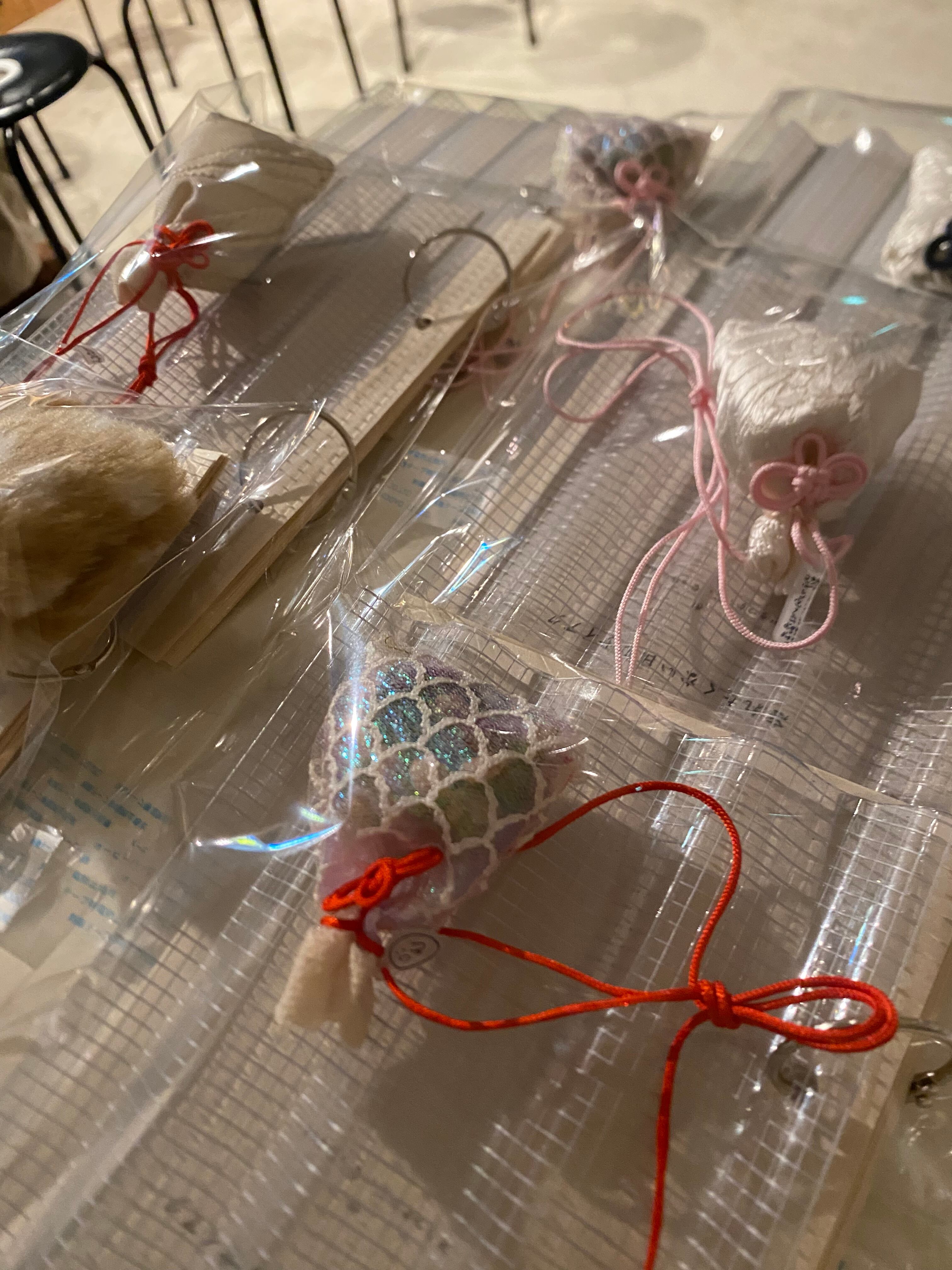 ランダムにお守り付き(備考に、どうぶつ風か、普通か、サシェ風(最後写真の手前のもの、花が入ってます)か書いてもらえたら色はランダムですがそのお守りを入れます)